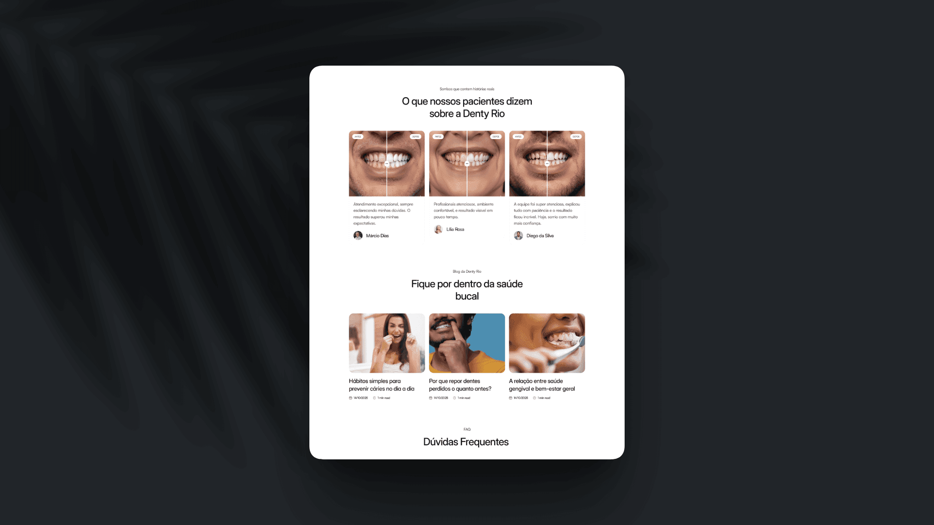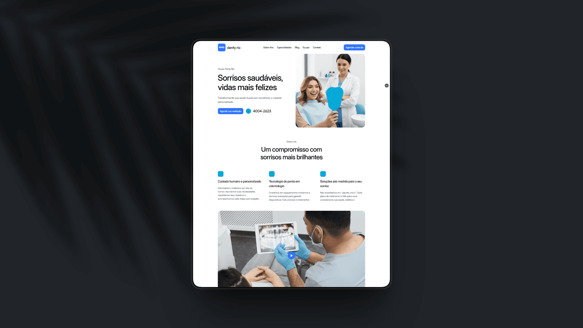 O setor de saúde sofre frequentemente com interfaces frias e complexas. O desafio do projeto piloto Denty Rio era superar a barreira da ansiedade do paciente: como criar um ambiente digital que transmita a seriedade clínica necessária, mas sem a frieza hospitalar que afasta o público e dificulta o agendamento?