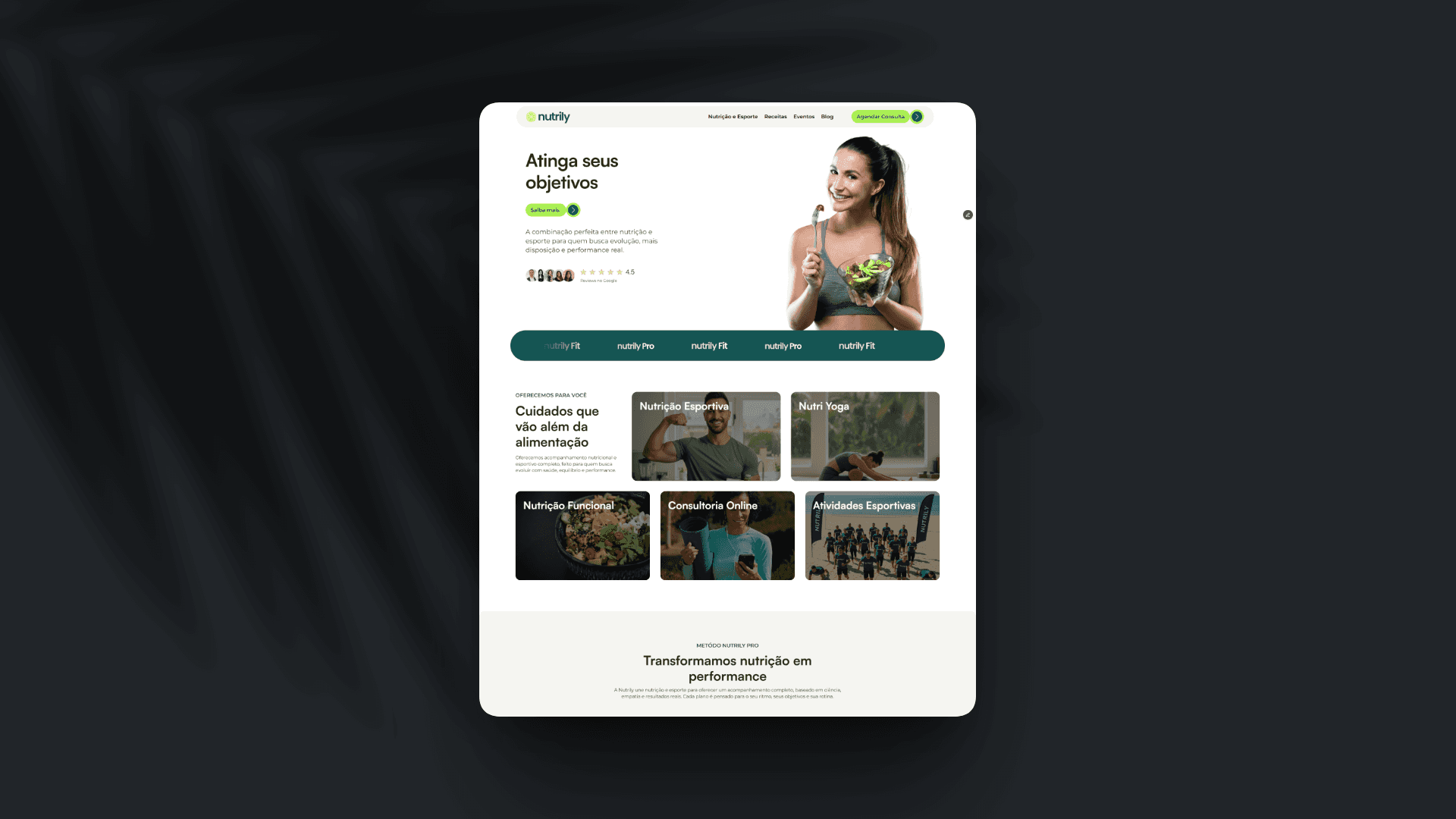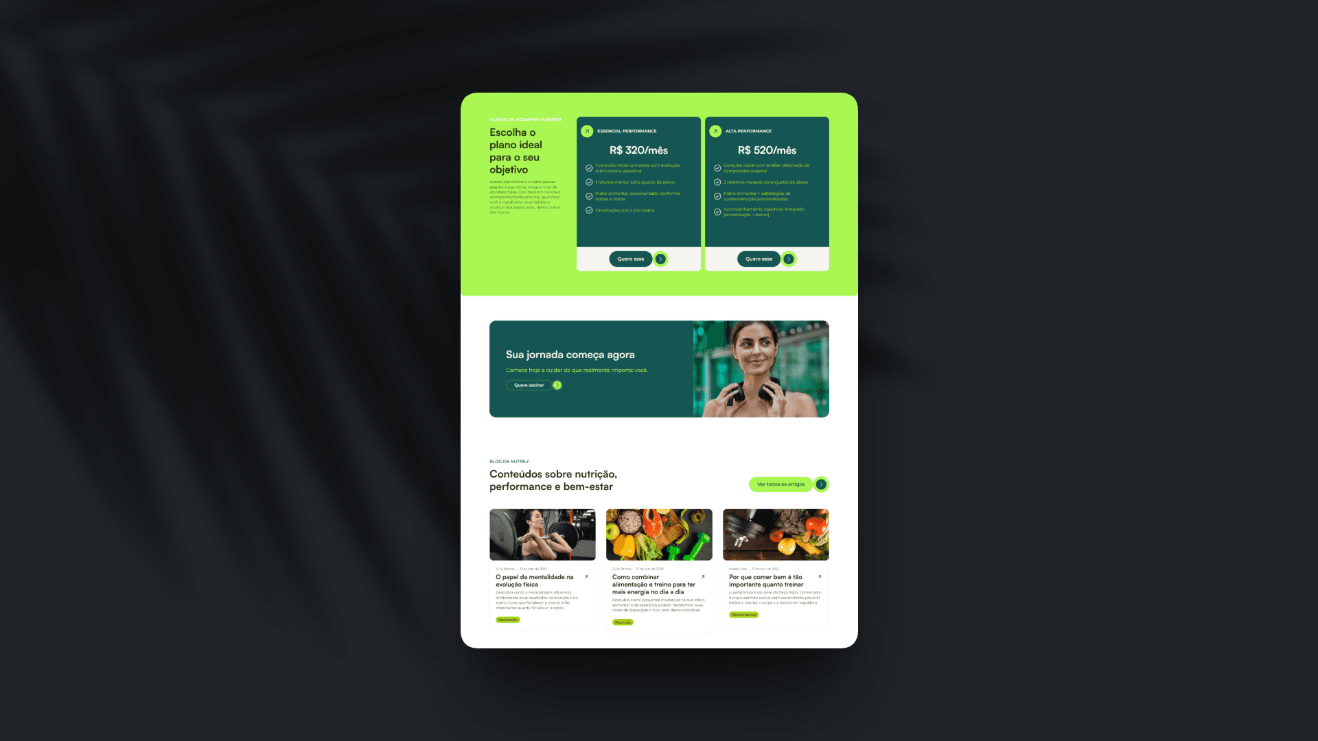 Muitos nutricionistas sofrem com sites genéricos, que se limitam a listar serviços e preços, sem transmitir a metodologia única do profissional. O resultado é uma guerra de preços e dificuldade em atrair pacientes que valorizem o tratamento. O desafio do projeto Nutrily foi criar uma presença digital que fugisse do 'branco hospitalar' e da estética amadora. O site precisava comunicar autoridade e acolhimento simultaneamente, funcionando como uma ferramenta de venda 24 horas para o consultório.